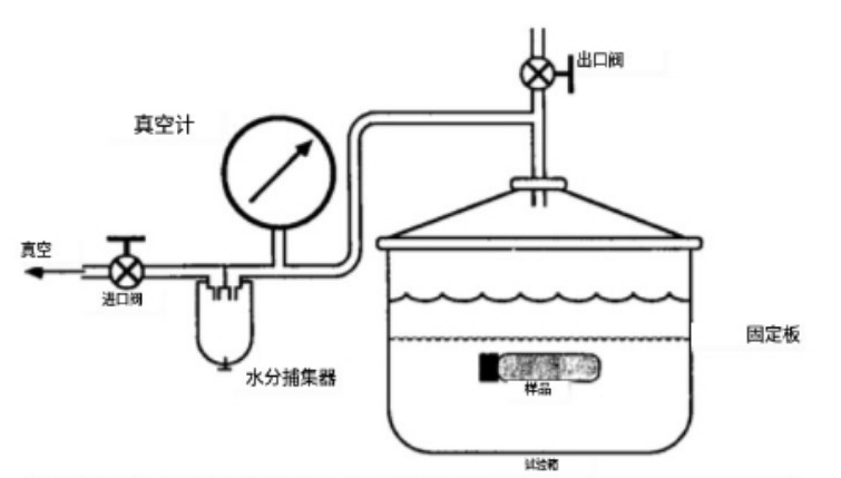 6.2真空計,來自真空源的進氣管,和通向大氣的出口管,應密封到蓋內。入口管和出口管應配備手動閥門。真空計必須是實驗室質量的,全量程范圍從0到100kPa(0到14.5 psi),并帶有最小刻度(分辯率)不大于2 kPa(0.3 psi)(0.3Psi)和精度到1%以內。應在真空計和真空源之間安裝一個合適的水分收集器(油水分離器),以防止液體回流。