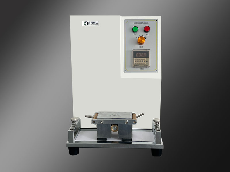 采用電機帶動往復(fù)移動機構(gòu),驅(qū)動“荷重磨擦體”(又名:荷重塊)做直線往復(fù)運動,對油墨或印刷品的墨層進行往復(fù)磨擦,之后通過磨擦前后色差的變化來評定油墨或印刷品的耐磨性能。