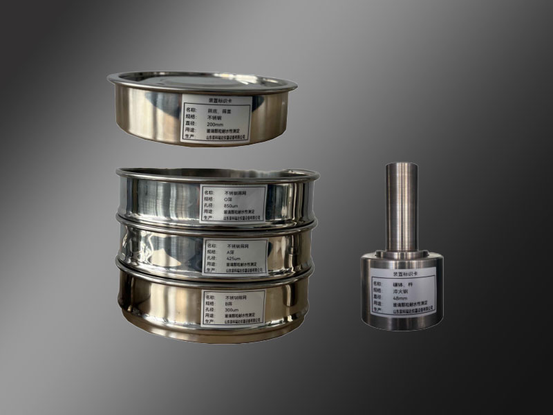 碎玻碾缽(材質(zhì):淬火鋼) 1個 ;碎玻杵1個;篩子 4個( 0.3mm、0.425mm、0.5mm、0.85mm) (可定做) 直徑20cm;篩底蓋 1個.